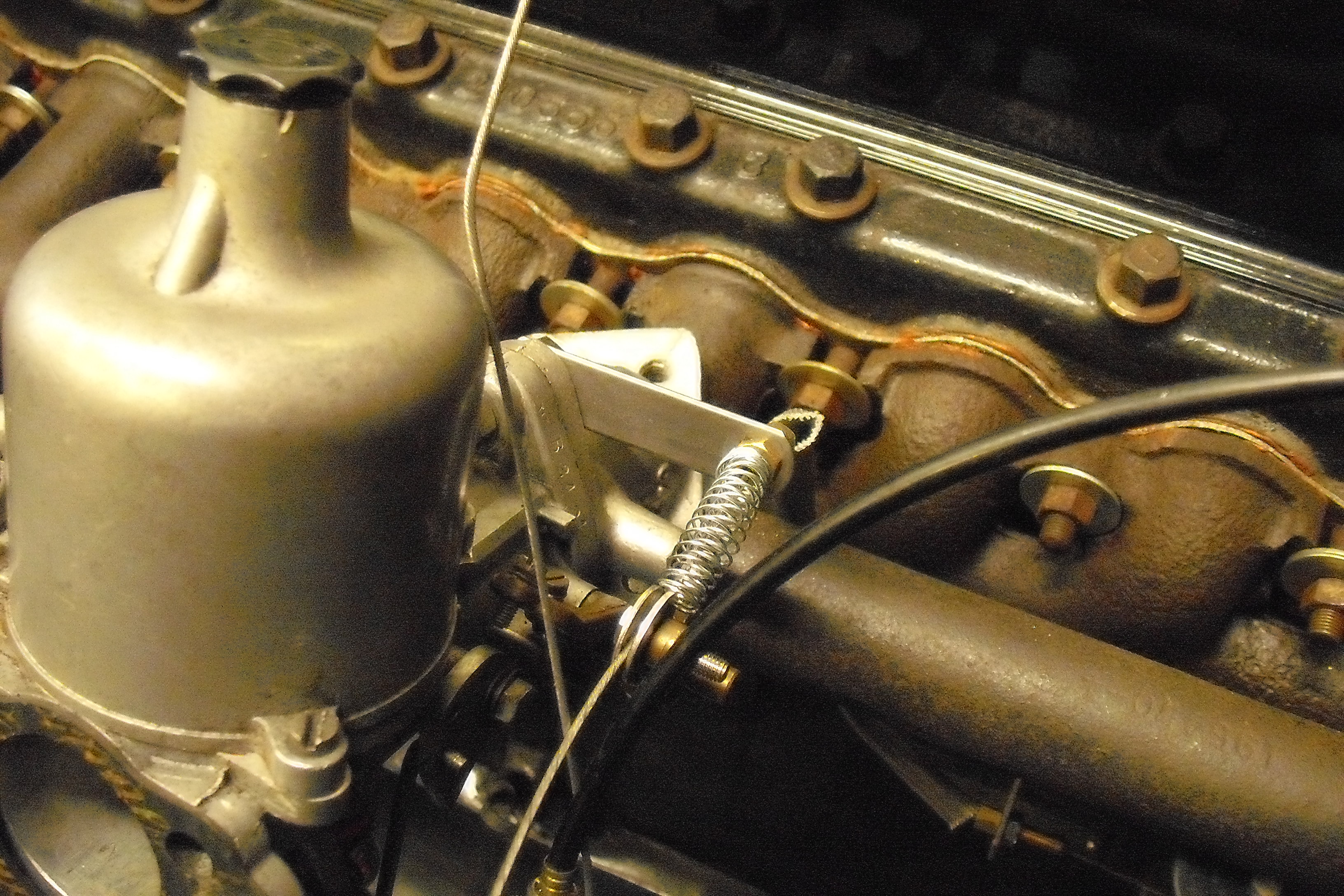 Apologies for the quality of the second photo, but this shows the new bracket and cable on the original Buick lever. It would have been rod operated originally.
