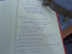 Me and Little Phil started the list at the back of the chassis, moving forward, noting all the tasks that needed completing.