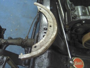 But before we put the wheels on we have to assemble the brakes, and that means fitting the new bolts & springs that Magic made, and the dust covers (mudguards) on the back of the brake drums.