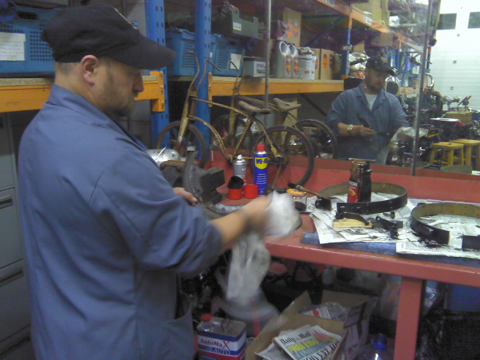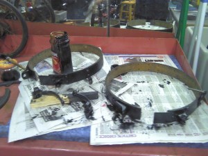 Phil cleaned and painted the good mudguards, and the rear external brake bands,