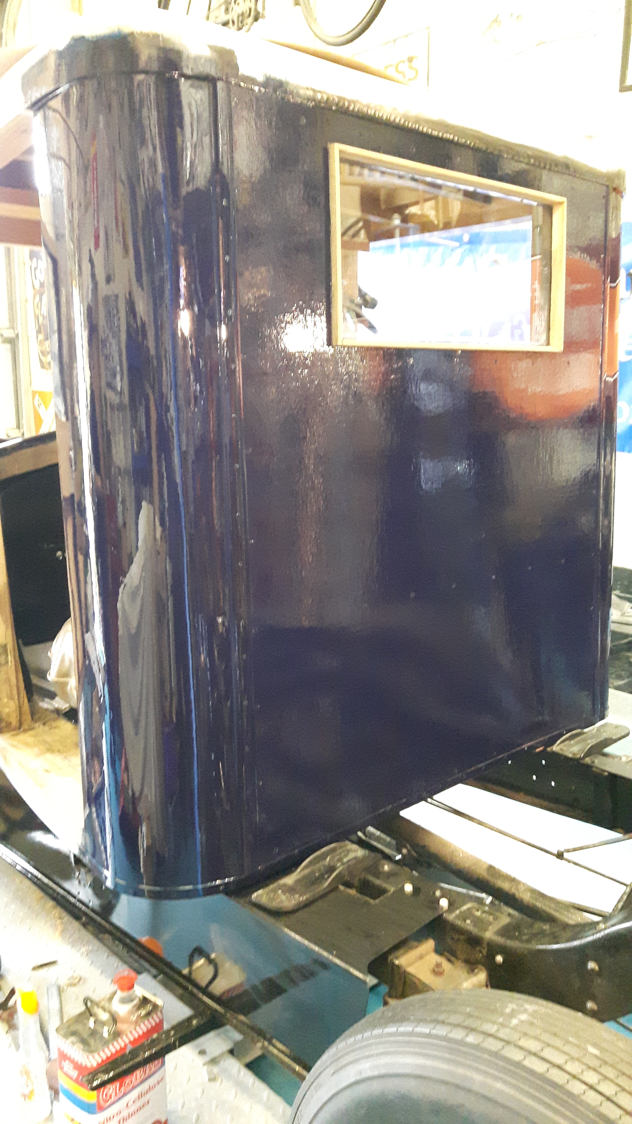 We lifted the pickup bed off for painting, and finishing of the back of the cab, and we are nearly ready to put the bed back on.