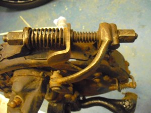 We removed the bolt & springs from the front right brake to give to Brian to to make 2 new bolts, and we cleaned up the brake back plates ready for painting.