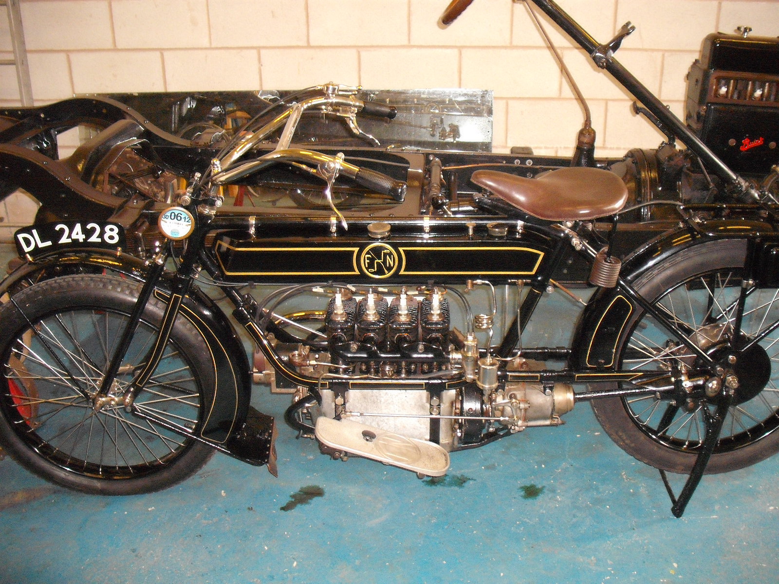 My Buick has a new friend to talk to, a 1920 FN 4 cylinder motorcycle. What tales they could tell, if only…