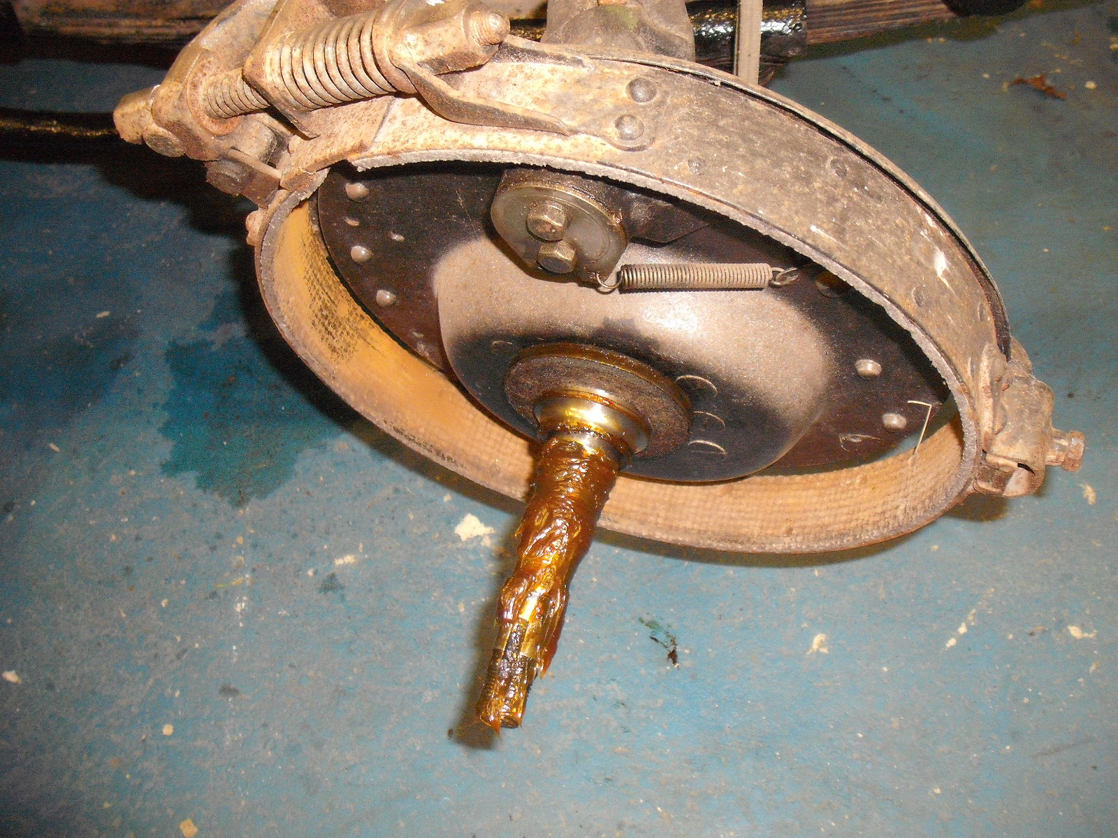 Phil then rubbed down the front springs and oiled them liberably, while I checked our boxes of spares for the missing brake parts. The covers are missing off the rear brake drums, as are the big bolts & nuts.
