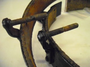 But I realised recently that the locating studs on the front brake bands are worn. Brian had replaced the studs on the rear brakes, one was snapped in half, but I did not think to check the front ones.